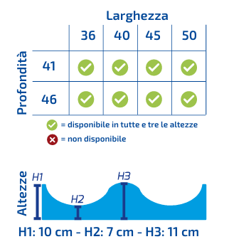 Base preformata in espanso con shape pronunciato per un ottimo contenimento di forma.